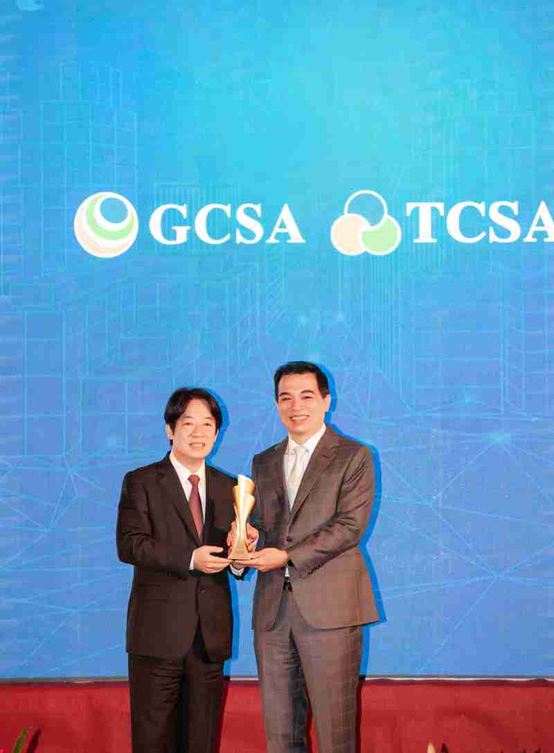 达全方位永续表现获全球永续奖及台湾永续奖肯定,,,,由副总统赖清德颁奖 (左),,,JDB电子总经理柯富仁 (右) 代表领奖