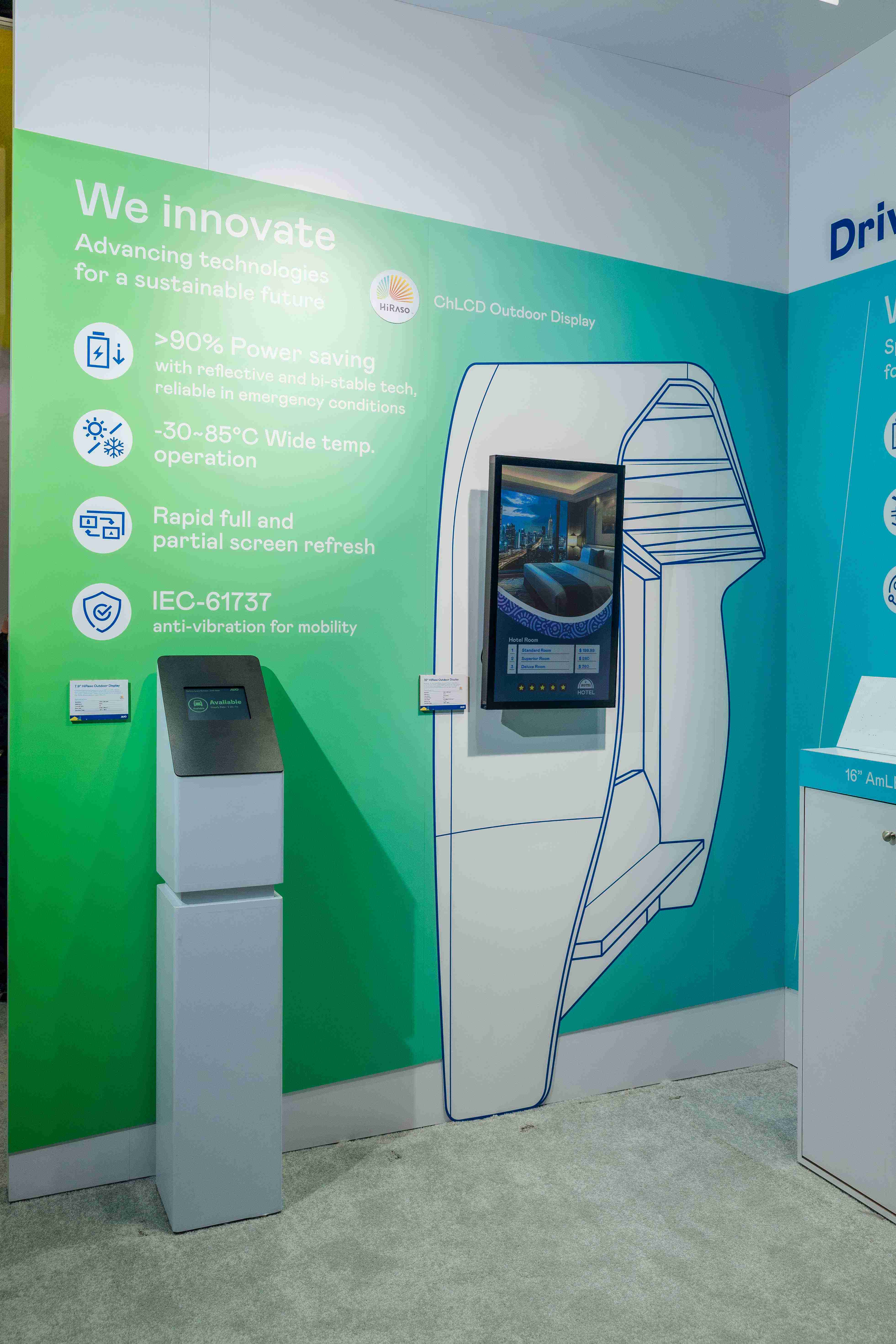 HiRaso胆固醇液晶显示器运用反射环境光线的方式,,呈现影像显示时零耗能的环保省电诉求,,,,光线愈强愈能呈现绝佳的色彩饱和度及显示效果,,,同时在摄氏-30度至85度间宽温的使用优势,,为户外电子看板的新首选。。。