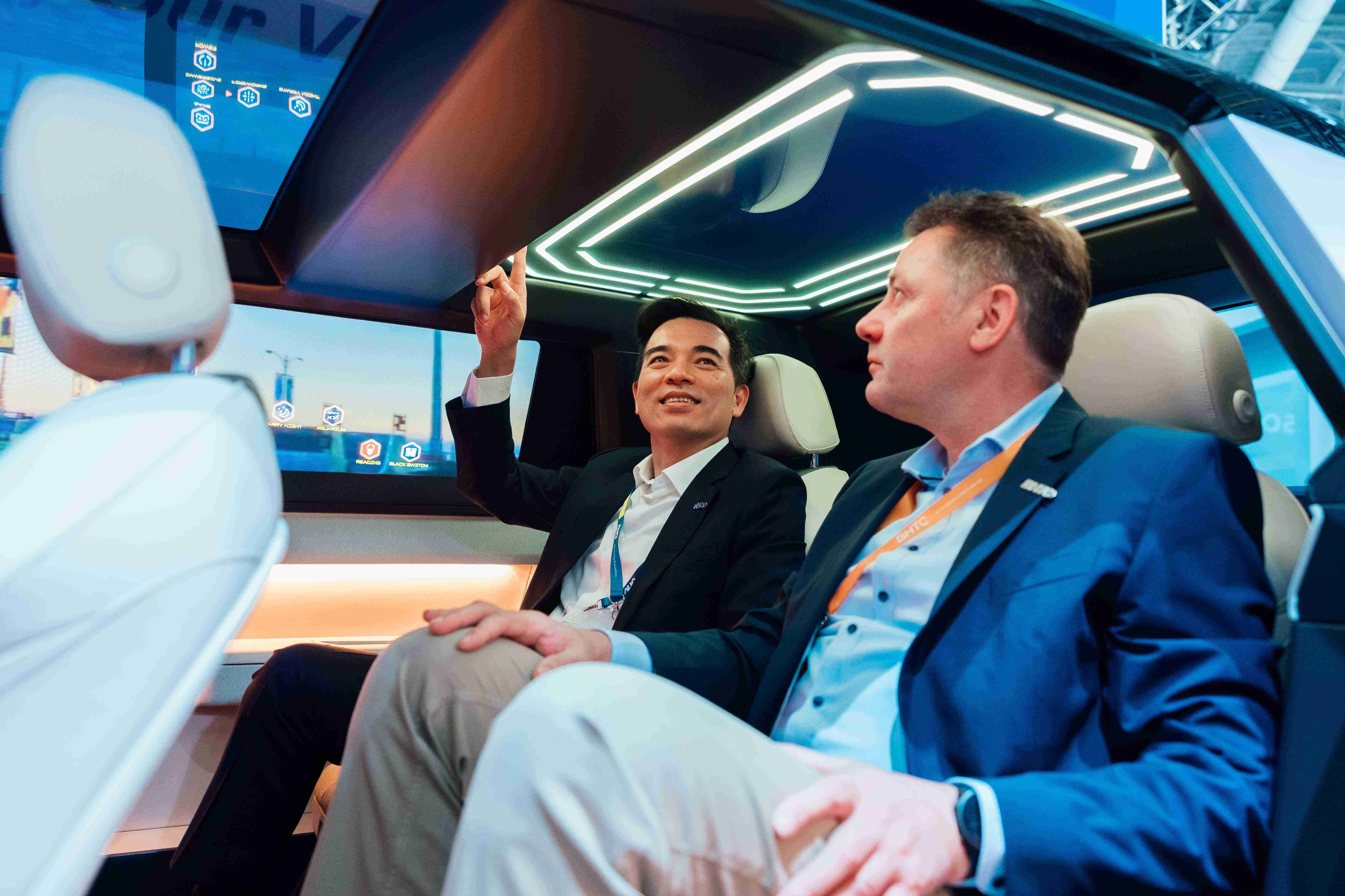 透过XR 互动智慧窗(XR Interactive Window)展现强大的运算能力,,,,搭配AI人工智慧自动生成运算,,未来当车辆行经途中,,只需在车窗上圈选对应之车外标的,,,,即可在萤幕中与其互动、、、、获取相关资讯,,,让乘客享有身历其境、、、、互动式且逼真的体验。。