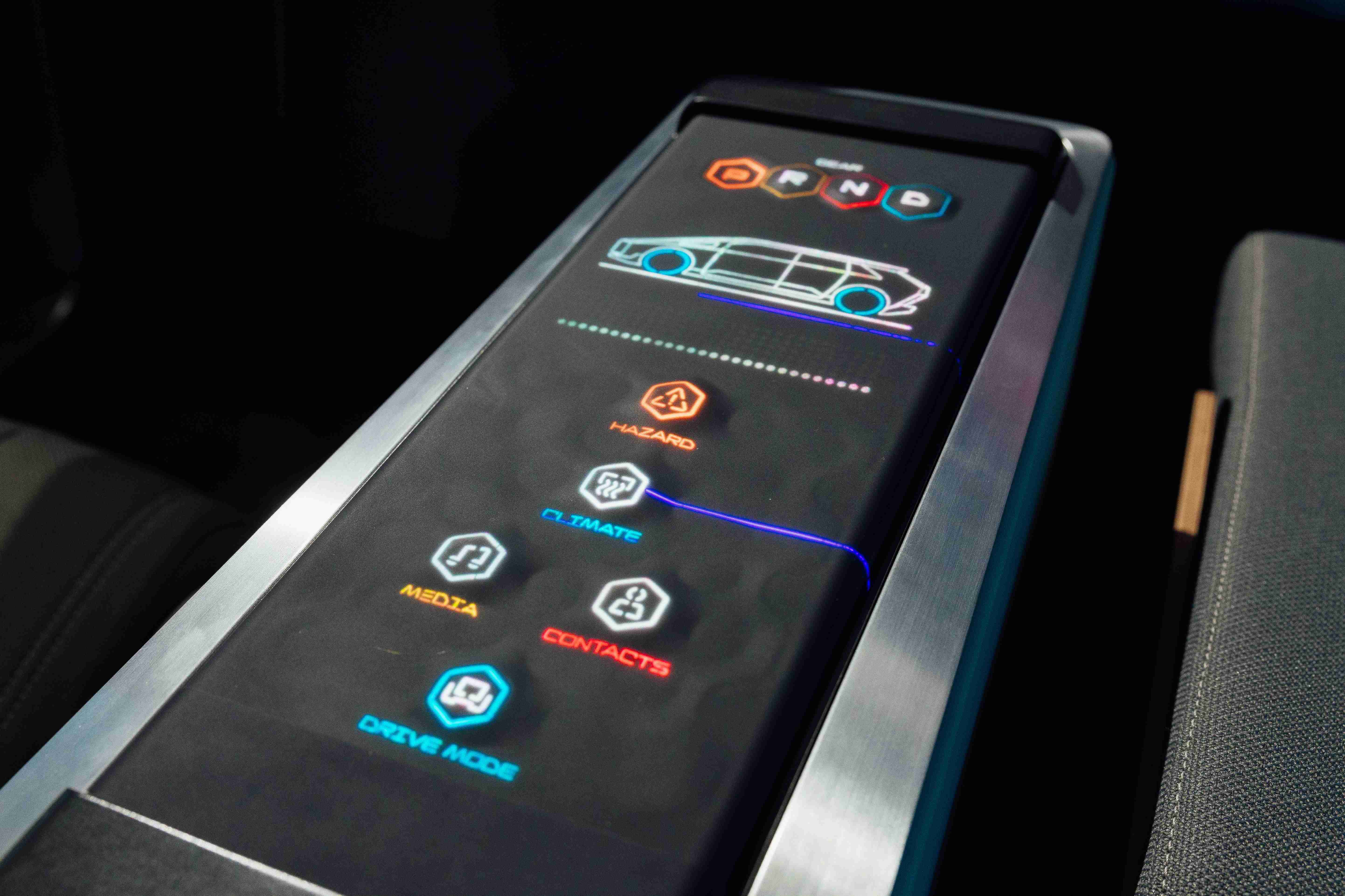 多变形态中控显示(Morphing Center Control)拥有动态变化的表面,,,,平时常态显示车辆功能,,进一步操作时,,则会隆起成为3D 按钮,,,,并在触控时以震动回馈,,,以精细的操作开创人机互动新境界。。 ![]()