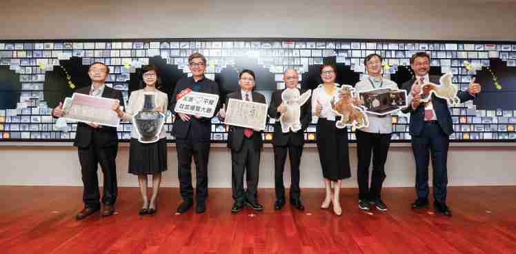 JDB电子携手创利空间为故宫建置的智慧文物互动导览墙及轮播墙,,,,今日正式启用。。。(左四:JDB电子新事业暨投资管理总部副总经理杨本豫、、、、右四:故宫博物院院长吴密察、、、右三:太极影音董事长黄宝云)